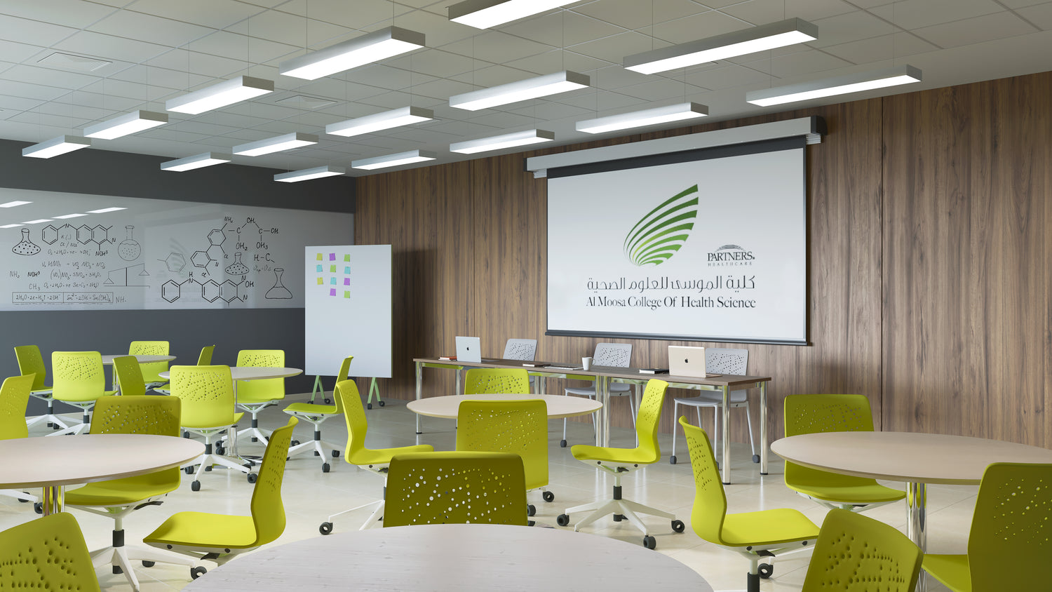 تميز التعاون بين مفن الرسام 21 السعودية وكلية الموسى للصحة والعلوم بتقديم خدمة تصميم داخلي مميزة لمجموعة الموسى. وقد تجلى الاختيار الدقيق للمواد وترجمة مفاهيم التصميم إلى رسومات العمل النهائية بسلاسة في جمال أعمال البناء الجارية.